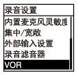 如果所选的灵敏度等级达不到预期,或者想进行一次重要录音,请遵循以上步骤,将“VOR”设为“关”。
