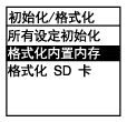 - 请注意:格式化内置存储器将删除所有存储的数据,包括受保护的文件,而且在格式化完成后将无法予以恢复。