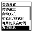 可以显示有关IC录音机的信息,如IC录音机的型号及软件版本号。