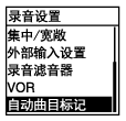 设置” - “录音设置” - “自动曲目标记”,然后按