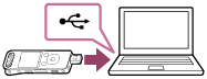 - Je-li lineární PCM rekordér připojen k počítači, který není spuštěn nebo je v režimu úspory energie (pohotovostním či spánkovém), nedojde k nabíjení baterie.