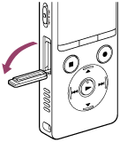 Βεβαιωθείτε ότι δεν υπάρχουν σε εξέλιξη λειτουργίες της συσκευής γραμμικής εγγραφής PCM και, στη συνέχεια, ανοίξτε το κάλυμμα της υποδοχής κάρτας microSD.
