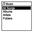 Music] elemet választja a HOME menüben, a kijelző ablakában megjelennek a tárolt fájlok keresési kategóriái.