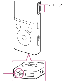 Nyomja meg a VOL -/+ gombot az ellenőrzésre szolgáló hangerő beállításához.Az ellenőrzési hangerő módosítása nincs hatással a rögzítési hangerőre.