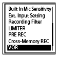 Ha a kiválasztott érzékenységi szint nem az elvárásoknak megfelelően működik, vagy ha fontos felvételt kíván készíteni, kövesse a fenti lépéseket, és állítsa a [VOR] funkciót [OFF] értékre.
