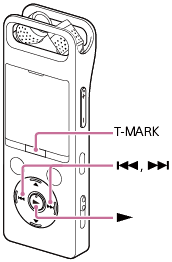Ha felvétel van folyamatban vagy szünetel, vagy ha lejátszás van folyamatban vagy készenléti módban, a T-MARK megnyomásával műsorszámjelzést helyezhet el a kívánt ponton.
