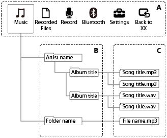 Az alábbi ábra szemlélteti a mappák és fájlok szerkezetét, amely a lineáris PCM felvevőn látható.
