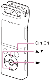 Az OPTION menüt az OPTION gomb megnyomásával jelenítheti meg. Az OPTION menüelemek a lineáris PCM felvevő kiválasztott funkciójától függően változhatnak.