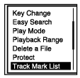 Ha a lejátszás készenléti módban vagy folyamatban van, válassza a [Track Mark List] lehetőséget az OPTION menüben, majd nyomja meg a