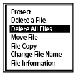 Selezionare [Delete All Files] o [Delete All in List] nel menu OPTION, quindi premere