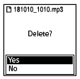 [Delete?] wordt weergegeven en het opgegeven bestand wordt afgespeeld ter bevestiging.