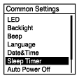 Settings] - [Common Settings] - [Sleep Timer] van het HOME-menu en druk vervolgens op