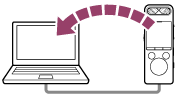 Pode copiar ficheiros e pastas do gravador de PCM linear para um computador para os guardar.