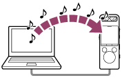 Pode copiar ficheiros de música e áudio (FLAC (.flac) / LPCM (.wav) / MP3 (.mp3) / WMA (.wma) / AAC-LC (.m4a)) de um computador para o gravador de PCM linear ao arrastar e largar.