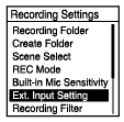 Selecionar o tipo de entrada de áudio e o nível de sensibilidade do microfone externo (Ext. Input Setting)