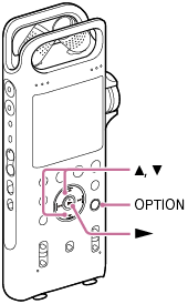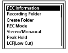 Vous pouvez afficher le menu OPTION en appuyant sur OPTION. Les options du menu OPTION varient selon la fonction sélectionnée de votre enregistreur PCM linéaire.