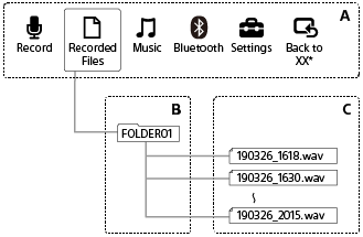 Les informations ci-dessous présentent la structure des dossiers et des fichiers visualisable sur votre enregistreur PCM linéaire.