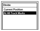 Lorsque la lecture est en pause, sélectionnez [Divide] - [At All Track Marks] dans le menu OPTION puis appuyez sur