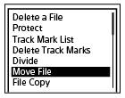 Lorsque la lecture est en cours ou en veille, sélectionnez [Move File] dans le menu OPTION, puis appuyez sur