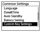 Settings] - [Common Settings] - [Custom Key Settings] dans le menu HOME, puis appuyez sur