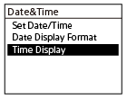 Settings] - [Common Settings] - [Date&Time] - [Time Display] dans le menu HOME, puis appuyez sur