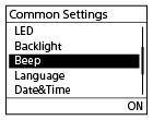 Settings] - [Common Settings] - [Beep] dans le menu HOME, puis appuyez sur