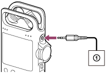 Vous pouvez brancher un microphone externe (du commerce) à la prise MIC IN/LINE IN de l’enregistreur PCM linéaire et l’utiliser pour l’enregistrement.