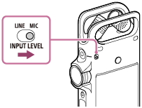Lorsqu’un microphone externe est branché à la prise MIC IN/LINE IN de l’enregistreur PCM linéaire, les microphones intégrés ne peuvent pas être utilisés pour l’enregistrement.