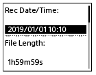 Rec Date/Time: Дата и время записи файла (год/месяц/день/время) (*).