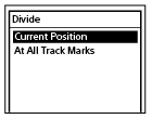 Если имеется маркер дорожки, установленный в пределах 0,5 секунды от места разделения, при разделении произойдет удаление этого маркера дорожки.