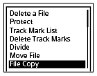 В то время как воспроизведение выполняется или находится в режиме ожидания, выберите [File Copy] в меню OPTION, а затем нажмите