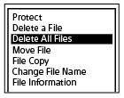 Выберите [Delete All Files] или [Delete All in List] в меню OPTION, а затем нажмите