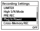 Если к гнезду MIC IN/LINE IN линейного PCM диктофона подключен микрофон с питанием от подключаемого устройства, вы можете включить функцию Plug In Power для подачи питания на подключенный микрофон с линейного PCM диктофона.