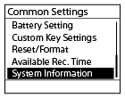 Вы можете отобразить информацию о линейном PCM диктофоне, например название модели линейного PCM диктофона и номер версии программного обеспечения.