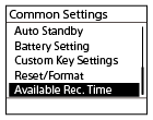 Settings] - [Common Settings] - [Available Rec. Time] в меню HOME, а затем нажмите