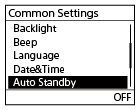 Settings] - [Common Settings] - [Auto Standby] в меню HOME, а затем нажмите