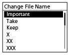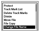 В то время как воспроизведение находится в режиме ожидания, выберите [Change File Name] в меню OPTION, а затем нажмите