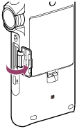Убедитесь в том, что линейный PCM диктофон не выполняет никаких операций, а затем откройте крышку слота карты памяти SD.