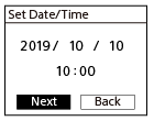 Если вы вынете батарейки и вернете их на место через 2 минуты или позже, или если вы замените батарейки на новые, отобразится экран Date&Time. На экране будут показаны дата и время, когда последний раз использовался линейный PCM диктофон, прежде чем были вынуты батарейки. Измените дату и время на текущие.