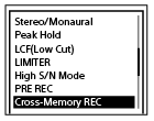 - Для выключения функции Cross-Memory REC выберите [OFF] в пункте 2.