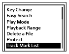 В то время как воспроизведение находится в режиме ожидания или выполняется, выберите [Track Mark List] в меню OPTION, а затем нажмите