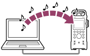Вы можете копировать музыкальные и аудиофайлы (FLAC (.flac) / LPCM (.wav) / MP3 (.mp3) / WMA (.wma) / AAC-LC (.m4a)) с компьютера на линейный PCM диктофон путем перетаскивания.