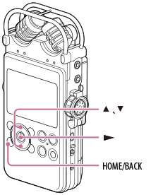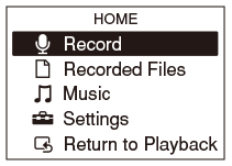 Para mostrar el menú HOME mantenga pulsado el botón HOME/BACK. Desde el menú HOME puede seleccionar una función o cambiar los ajustes de la grabadora PCM lineal.