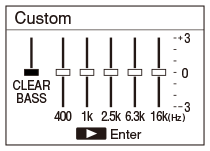 Aparecerá la ventana de ajustes personalizados. - Para ajustar el nivel de sonido de las bandas de 400 Hz, 1,0 kHz, 2,5 kHz, 6,3 kHz y 16 kHz, pulse