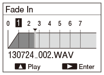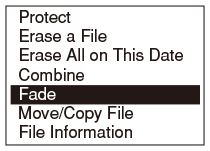 - Seleccione el archivo LPCM grabado, pulse el botón OPTION para mostrar el menú OPTION, seleccione “Fade” y, a continuación, pulse el botón