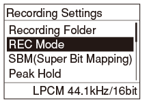 Seleccione el modo de grabación para LPCM y MP3.
