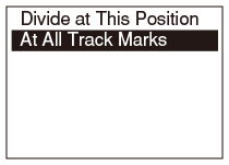 - Pulse el botón OPTION para mostrar el menú OPTION, seleccione “Divide” - “At All Track Marks” y, a continuación, pulse el botón