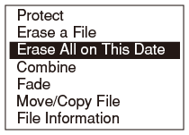 para seleccionar la fecha en la que se grabaron los archivos que desee borrar mientras se está visualizando el calendario. - Pulse el botón OPTION para mostrar el menú OPTION, seleccione “Erase All on This Date” y, a continuación, pulse el botón