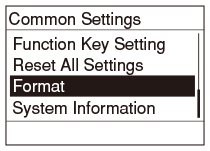Settings” - “Common Settings” - “Format” y, a continuación, pulse el botón