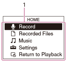 Décrit l’affichage qui apparaît lorsque que vous utilisez le menu HOME.